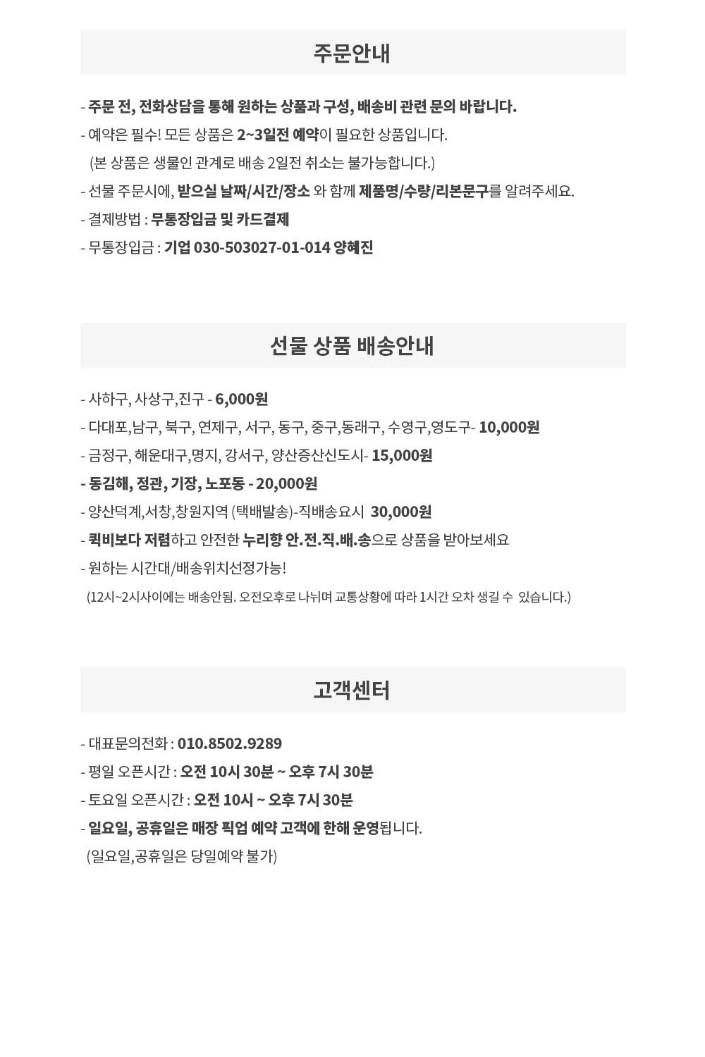 ** 급하게 당일주문 픽업 요청하실 경우 제시간에