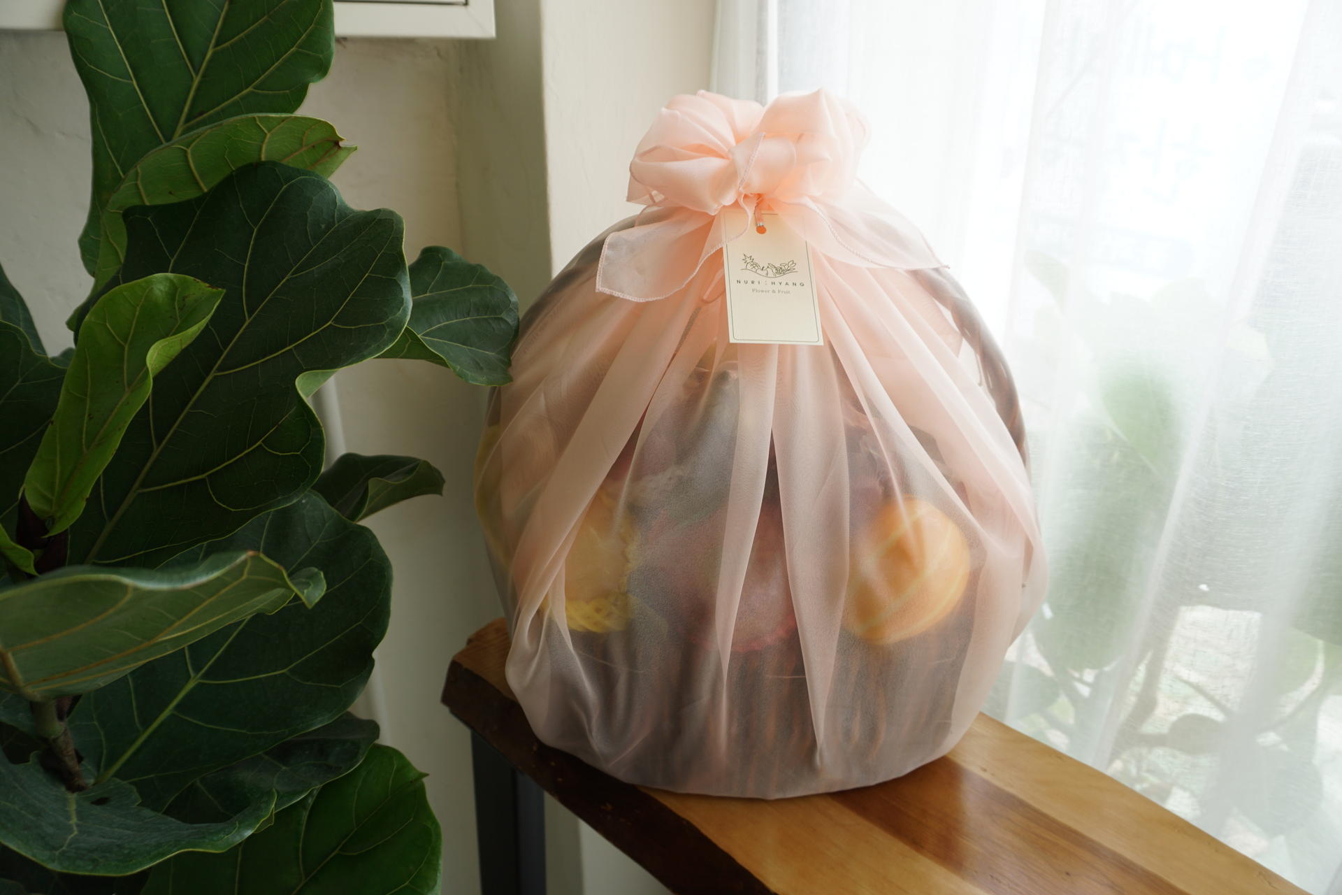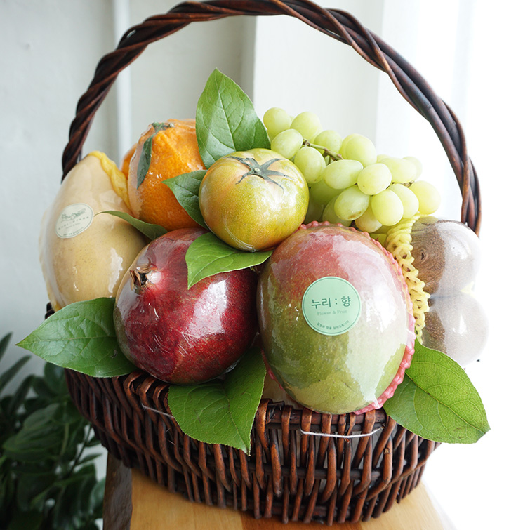 생화를 추가하여 더욱더 아름다운 과일바구니를 제작해드립니다.