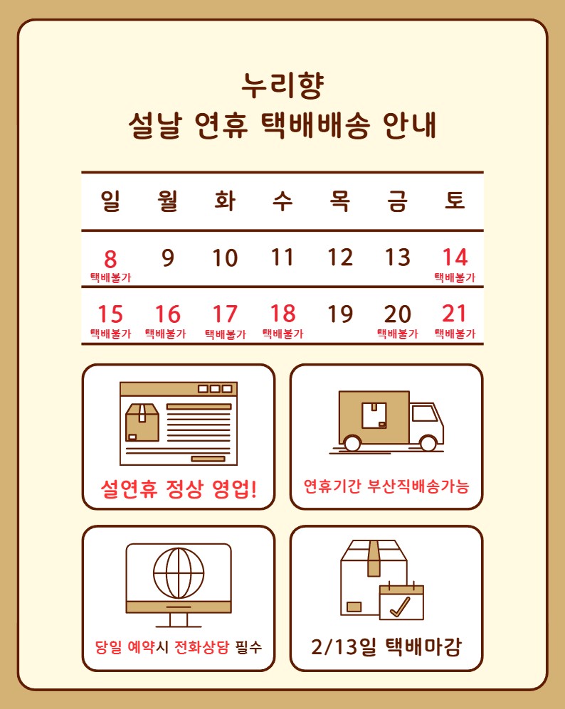 택배(발송후 다음날 도착) - 2/12 목요일 까지 주문마감 ,